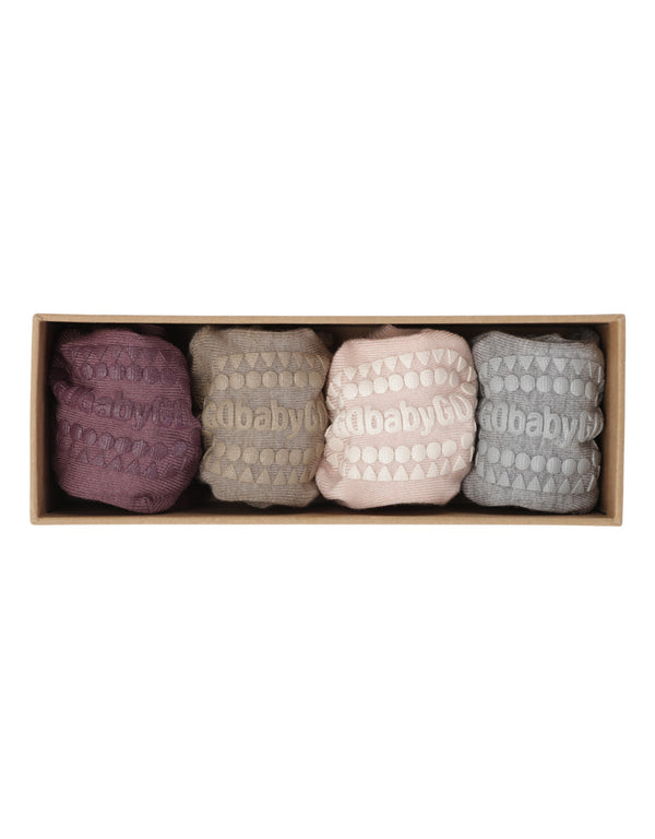 Combo Box met 4 paar GoBabyGo bamboe sokjes met antislipzooltjes en rubberen
