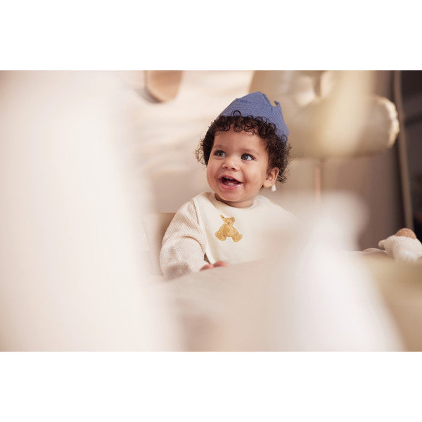 De slabs zijn gemaakt van katoen en polyester, lekker comfortabel dus! Je kunt de slab gemakkelijk aan- en uittrekken bij je kindje dankzij de klittenbandsluiting.