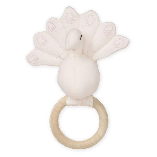 De rammelaar heeft een belletje wat het aantrekkelijk maakt voor je baby om mee te spelen. De ring is gemaakt van esdoornhout en is makkelijk vast te houden voor je baby. De hydrofiele doek heeft een schattige print en is gemaakt van 100% Organisch katoen, waardoor het erg zacht aanvoelt op de tedere babyhuid.