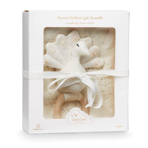Met deze schattige cadeaubox van Cam Cam Copenhagen hoef jij niet lang te zoeken naar een kraamcadeau. De box bevat een hydrofiele doek met een leuke print en een handgemaakte rammelaar