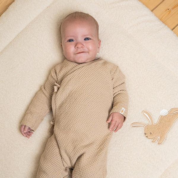 Der Teddy -Stoff verleiht einen zusätzlichen Hauch von Weichheit, so dass der Boxteppich nicht nur sehr weich, sondern auch eine schöne Ergänzung in der Schachtel ist. Die Füllung mit Polyester sorgt für eine bequeme Oberfläche, perfekt für Spielzeit und Nickerchen. Dank der beiden Seite ist es Little Dutch Spielen Sie das Kleid, das für jeden Stil geeignet ist. Auf der einen Seite enthält der Boxteppich einen süßen Hasen und andererseits hat der Teppich eine dunklere Farbe und einen schönen Text. Die Details zum Teppich werden subtil verarbeitet und machen ein schönes Ganzes.