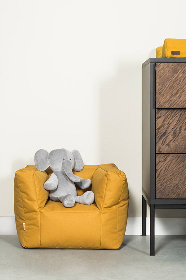 Schöne Umarmung von einem Elefanten. Die weiche Velvet -Umarmung ist in den Farben Senf, grau und rostbraun erhältlich. Der Elefant besteht aus 75% Baumwolle/25% Polyester und sein Bauch wird mit 100% Polyesterfaserfüllung gefüttert. Die Umarmung ist 36x30x17 cm groß.