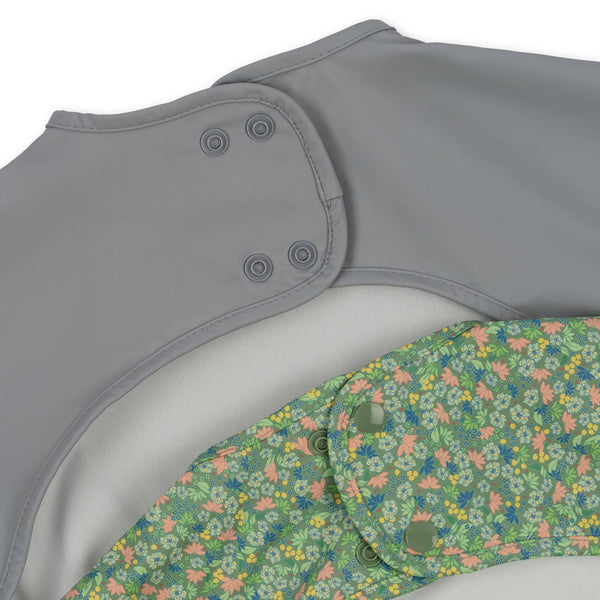 Lupe mit langen, elastischen Ärmeln und Schnappschüssen in den Hals. Diese sind pro zwei gepackt und in verschiedenen Drucken und Farben erhältlich.