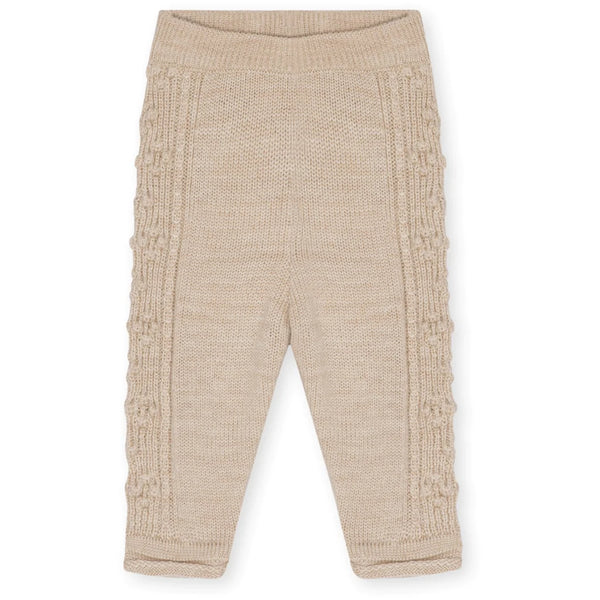 Schöne Hosen mit schöner, breiter elastischer Taille und schönem Detail nebenbei. Mit 100% biologischer Baumwolle gestrickt. Hosen stammen von der Marke Konges Slojd. Die Marke steht für Funktionalität und Qualität mit einer Vision für einfache skandinavische Kinderkleidung und -produkte. Diese Cabby -Hosen sind einfach wunderschön mit ihren subtilen offenen Strickwaren