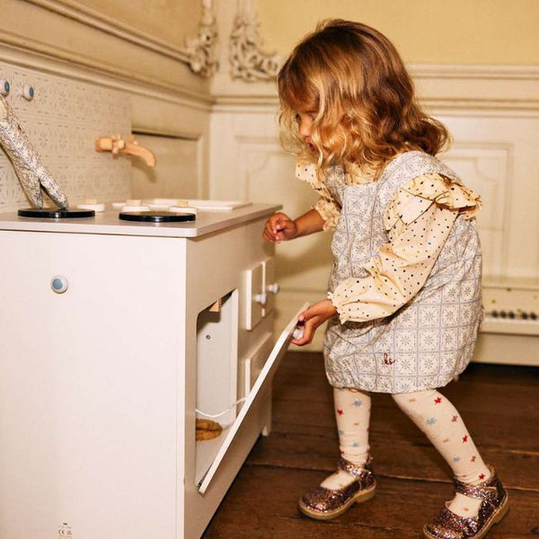 Was für ein wunderschöner Koch, aus dem dekoriert wurde Konges Slojd! Diese Küche in 4 Teilen hat alles, was Ihr kleiner Küchenprinze oder Ihre Prinzessin als echter Koch in der Spielküche arbeiten muss.