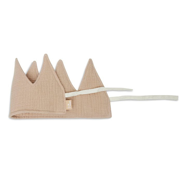Die Krone besteht aus hydrophiler Baumwolle und hat zwei Kabel hinten, damit Sie sie an die gewünschte Größe schließen können. Diese Stoffkrone ist für Kinder von etwa 1 bis 4 Jahren geeignet.