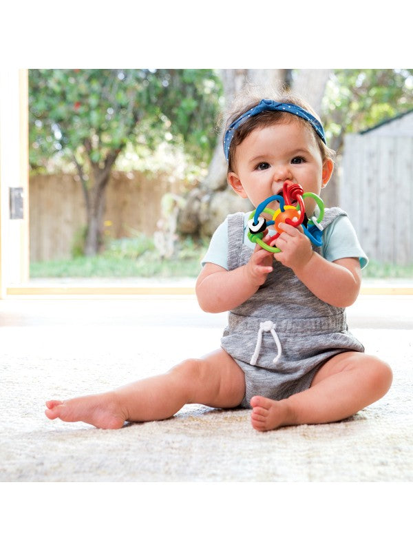 Dieses schöne Rasseln enthält weiche Teile zum Biss, die speziell für das empfindliche Zahnfleisch Ihres Kindes ausgelegt sind!