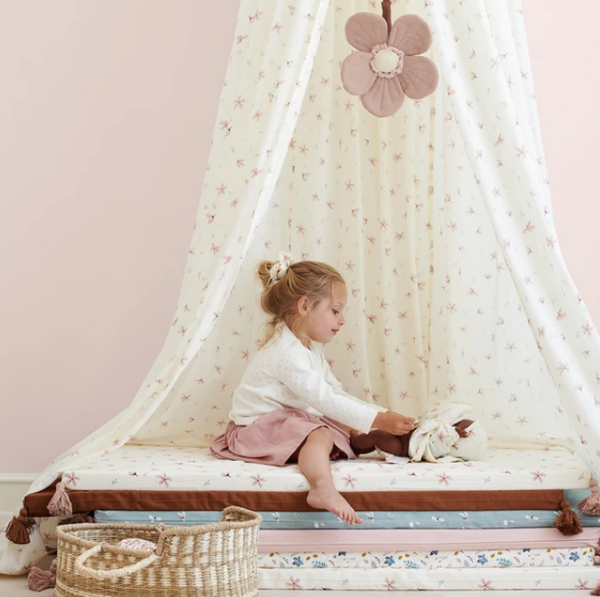 Beautiful music mobile of a flower by Cam Cam Copenhagen. Featuring the beautiful "Lullaby" melody by Johannes Brahms. Adds sophistication and poetry to any nursery. Let your little one dream away to this sweet tune and enjoy the luxurious look yourself.