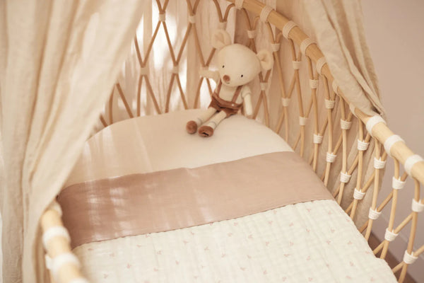 Give your little one's crib or crib a stylish touch with our soft ruffled bed sheet. It adds a touch of elegance without compromising on comfort. Perfect for your mini's crib. The light color makes it endlessly combinable. No inspiration? No problem! Then choose for example a blanket Basic Knit or Miffy.!