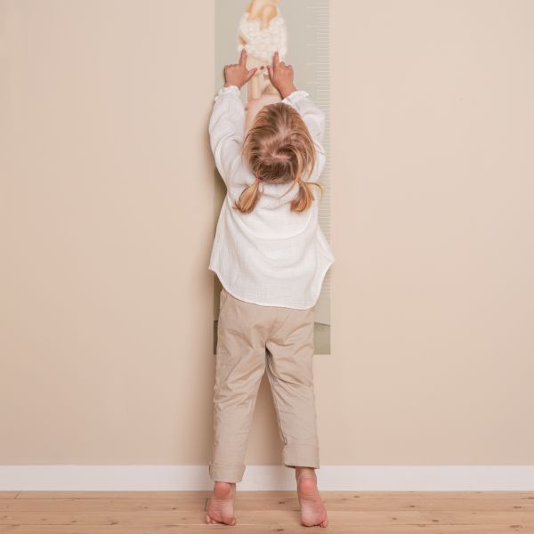 A growthimeter wall sticker Little Farm by the brand Little Dutch, to keep track of how fast your little one is growing! The growth chart with farm animals, from chick to cow, is a playful element in the nursery.
