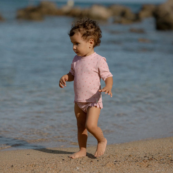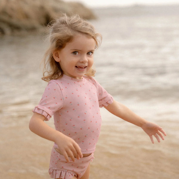 A cute and functional swim shirt that effortlessly combines style and comfort for any little beach lover.