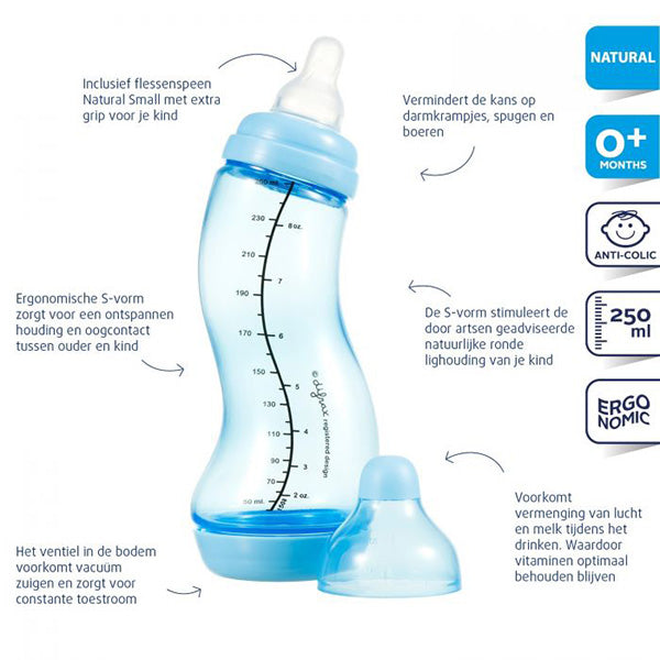 Difrax - S-fles Anti-Koliek BPA Vrij -  250 ml, Babyflessen, Difrax, Keekabuu