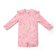 Plongez dans l'été avec ce joli maillot de bain à l'effigie de l'enchanteresse Little Dutch. Trésors d'Océans-Le design. La base rose pâle est richement décorée d'hippocampes, de coraux et de coquillages, créant un thème sous-marin féerique. Les manches longues offrent une protection supplémentaire contre le soleil, tandis que les volants sur les épaules ajoutent une touche ludique et élégante. La fermeture éclair sur le devant permet de l'enfiler et de l'enlever facilement, même lorsque votre enfant est mouillé et dans le sable.