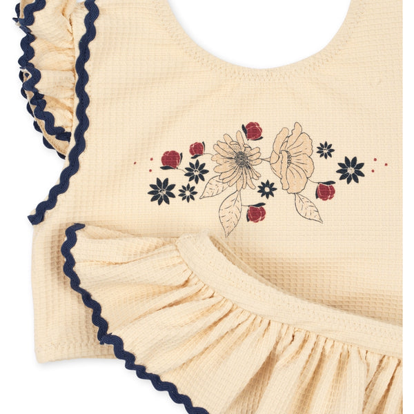 Bikini doux pour les journées ensoleillées. Fabriqué en 81 % de nylon et 19 % d'élasthanne. Boutons-pression à l'ouverture des jambes de la taille 6M à 18M.