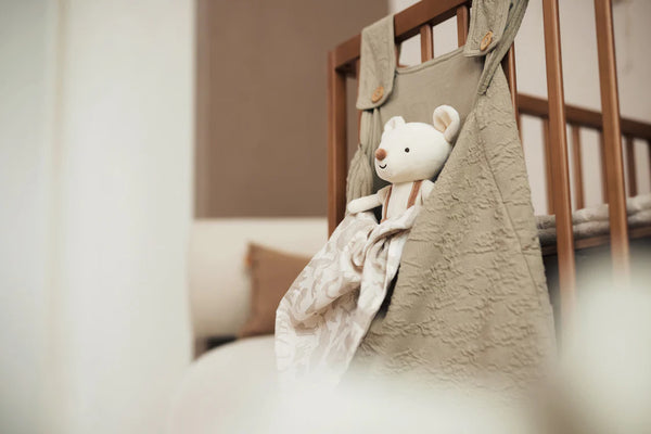 Rien n'est plus ennuyeux qu'une chambre d'enfant en désordre. Des peluches, des jouets et des livres partout. Avec ce panier de rangement pratique, vous pouvez facilement tout ranger et il est très élégant dans la plus belle pièce de la maison. L'imprimé sur le panier de rangement est une vague ondulée du thème Soft Waves. Vous aimez les couleurs douces ? Le panier de rangement est disponible en vert olive et en nougat, quelle pièce ne lui conviendrait pas ? Assortissez parfaitement la grande corbeille de rangement avec la petite corbeille du thème Soft Waves. Fabriqué en coton certifié OEKO-Tex.