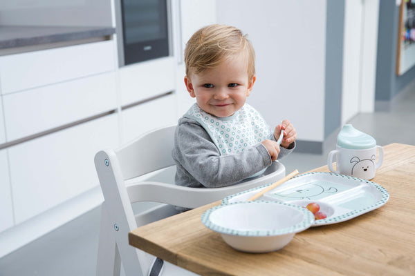 Les bavoirs ont une fermeture réglable qui grandit avec votre bébé. Ils conviennent aux enfants de 12 à 18 mois. Grâce à la fermeture Velcro pratique, ils s'enfilent facilement et restent en place.