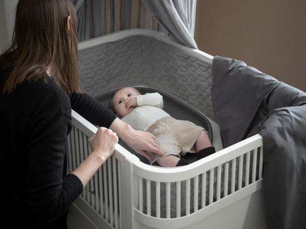 Magnifique tour de lit rembourré de la marque danoise Sebra. Un tour de lit pour bébé réduit la taille d'un lit d'enfant ou d'un lit de bébé et crée un environnement sûr et confortable. Les enfants plus grands qui se retournent souvent ne peuvent pas se blesser sur le bord dur du lit. Si l'un des côtés du lit peut être retiré, le tour de lit sert de support latéral. Un enfant en bas âge peut sortir du lit tout seul et ne pas tomber pendant la nuit. Le tour de lit peut également être utilisé dans le parc pour enfants. Ce tour de lit de Sebra est fabriqué en 100% coton avec un rembourrage en polyester. Le tour de lit est attaché aux barreaux avec des ficelles pour qu'il reste bien en place.