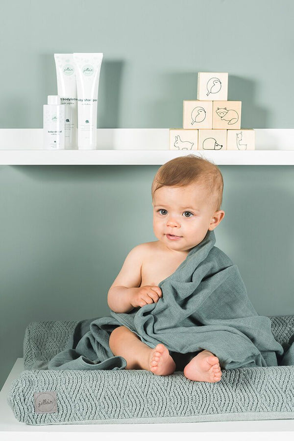 De Jollein Bamboe hydrofiele doeken Ash Green worden geleverd als 4-pack in de kleuren grijs/donkergrijs, groen/donkergroen, roze/donkerroze en mosterd/roest. De doeken zijn gemaakt van 30% katoen en 70% bamboe. De afmeting is 70x70 cm.