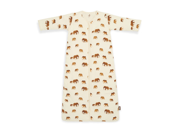 Deze fijne babyslaapzak met stoere print heeft afritsbare mouwen. Zo tover je hem om van een TOG-waarde van 3.0 voor de koude winterdagen naar een TOG-waarde 2.0 voor de frisse nachten in de lente en het najaar.